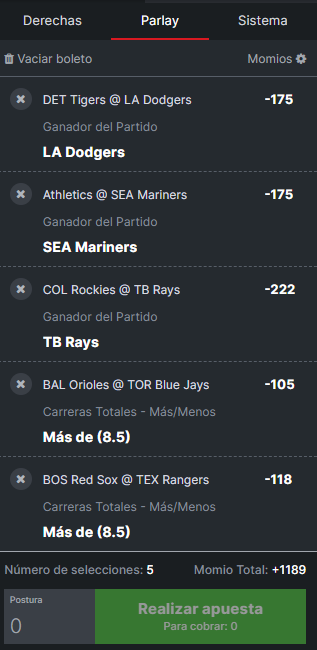 Por último, si lo que quieres es Apostar en varios partidos a la vez, con las Apuestas Parlay de la MLB es posible.